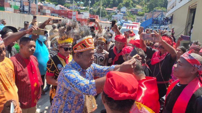 SuaraPemerintah.ID – Sekitar pukul 12.00 Waktu Papua, KM Dobonsolo yang membawa 57 orang peserta KMAN VI dari Komunitas Masyarakat Adat dari Bumi Raja-Raja – Maluku, memasuki Teluk Hombold. Sementara di Pelabuhan Laut Jayapura, 15 anggota dari Sanggar Seni Cenderawasih mulai beraksi dengan tari dan lagu-lagu penyambutan, walau saat itu, panas mentari membakar Kota Jayapura.