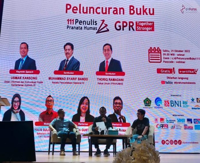 SuaraPemerintah.ID – Sebanyak 111 Humas Pemerintah yang tergabung dalam Ikatan Pranata Humas Indonesia (Iprahumas) menulis sebuah buku tentang Presidensi G20 Indonesia. Buku ini merupakan dukungan konkrit Iprahumas dalam menyukseskan dan membumikan narasi positif perhelatan internasional tersebut.