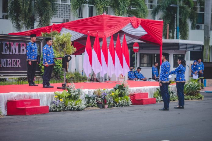 SuaraPemerintah.ID – Bupati Jember Hendy Siswanto memimpin upacara peringatan Hari Korps Pegawai Republik Indonesia (KORPRI) yang dilaksanakan di depan Kantor Pemkab Jember, Selasa (29/11/22).