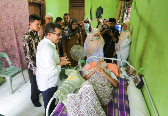 SuaraPemerintah.ID –  Penjabat Wali Kota Banda Aceh Bakri Siddiq bersama Ketua DPRK Banda Aceh Farid Nyak Umar menyambangi rumah Cut Safiah, 67 tahun, di Jalan Elang Timur, Gampong Blang Cut, Kecamatan Lueng Bata, Senin, 21 November 2022.