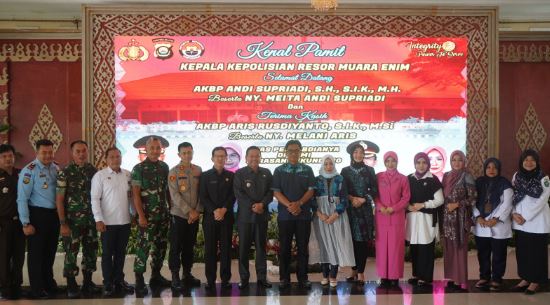SuaraPemerintah.ID – Pemerintah Kabupaten (Pemkab) Muara Enim menggelar Ramah Tamah dan Kenal Pamit Kapolres Muara Enim dengan Pergantian Jabatan Kapolres Muara Enim dari AKBP Aris Rusdyanto menjadi AKBP Andi Supriadi, Senin (31/10) di Balai Agung Serasan Sekundang, Kota Muara Enim.