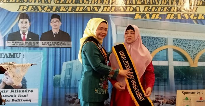 Sebelum menghadiri dan menyaksikan langsung Pengukuhan Bunda Literasi Bangka Barat, di hari yang sama Bunda Literasi Babel Sri Rahayu Mulya Naziarto turut menghadiri peresmian Gedung Layanan Perpusda Bangka Barat.