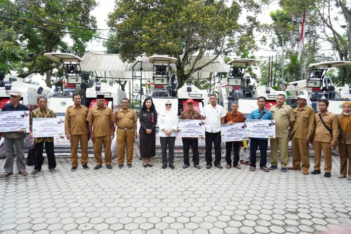 Alat pemotong padi itu diberikan secara langsung oleh Bupati Anna di halaman kantor Dinas Ketahanan Pangan dan Pertanian, Selasa (27/12/22). Pemberian itu dalam rangka efisiensi dan meningkat hasil pertanian.