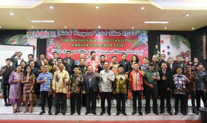 SuaraPemerintah.ID – Bertempat di Aula Gedung STTE Talang Jawa Tanjung Enim Kecamatan Lawang Kidul, Kamis sore (22/12), mewakili Bupati Muara Enim, Kepala Badan Kesatuan Bangsa dan Politik (Kabankesbangpol) Kabupaten Muara Enim Andi Wijaya menghadiri kegiatan Peringatan Natal Tahun 2023 yang diselenggarakan Forum Komunikasi Kristiani (FKK) Kabupaten Muara Enim.