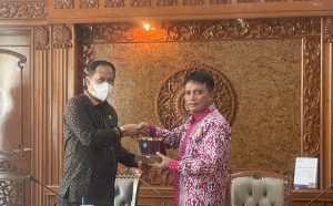 Pertemuan di Balai Pelestarian Cagar Budaya Jambi diakhiri dengan pemberian plakat dan buku sebagai kenang-kenangan. (aliyah).