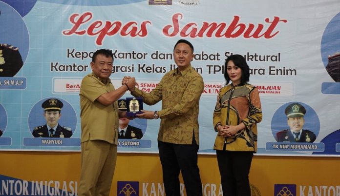 SuaraPemerintah.ID – Mewakili Bupati Muara Enim, Staf Ahli Bidang Pemerintahan Hukum dan Politik Alfarizal hadiri acara Lepas Sambut Kepala Kantor (Kakan) Imigrasi Kelas II Non TPI Kabupaten Muara Enim, Senin (16/01) di Aula Ruang Detensi Kantor Imigrasi Kelas II B Non TPI Muara Enim.