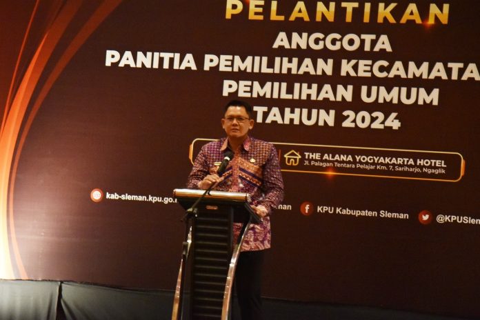 SuaraPemerintah.ID – Wakil Bupati atau Wabup Sleman Danang Maharsa menghadiri pelantikan anggota Panitia Pemilihan Kecamatan (PPK) Pemilu 2024, Rabu (4/1/23), di The Alana Hotel and Convention Center, Ngaglik, Sleman.