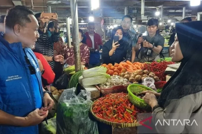SuaraPemerintah.ID – Menteri Perdagangan (Mendag) Zulkifli Hasan meninjau harga bahan pokok di Pasar Cisalak Jalan Raya Bogor, Cimanggis Kota Depok Jawa Barat, Sabtu pagi.