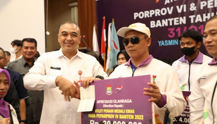 SuaraPemerintah.ID –Â Bupati Tangerang Ahmed Zaki Iskandar memberikan apresiasi dan bonus kepada para atlet dan pelatih yang telah berprestasi di ajang Pekan Olahraga Provinsi (Porprov) ke- 6 Banten dan Pekan Paralympic Provinsi (Peparprov) ke-4 Banten yang digelar di Kota Tangerang pada akhir 2022 yang lalu.