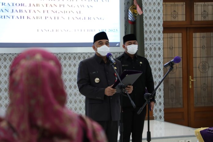 Hal itu ditegaskan saat melantik dan mengambil sumpah PNS dalam jabatan administrator jabatan pengawas dan penyesuaian jabatan fungsional di lingkup Pemerintahan Kabupaten Tangerang. Acara tersebut digelar di Pendopo Bupati Tangerang Ki Samaun Kota Tangerang, Senin (13/2/23).