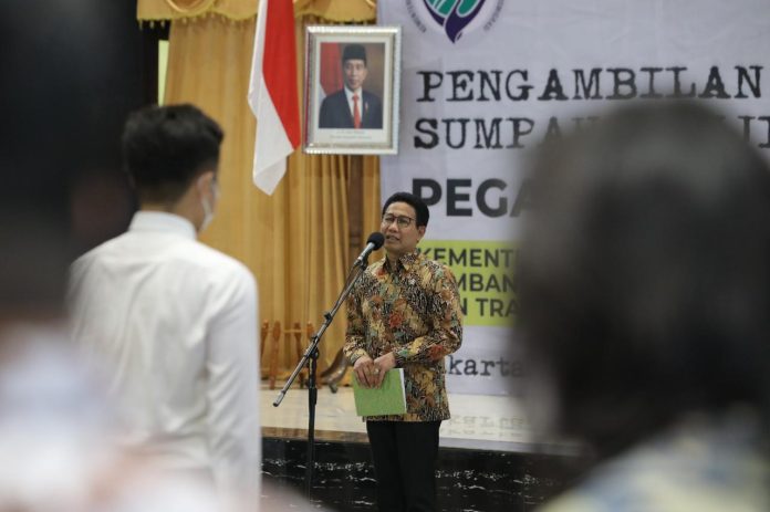 SuaraPemerintah.ID – Menteri Desa Pembangunan Daerah Tertinggal dan Transmigrasi atau Mendes PDTT, Abdul Halim Iskandar mengambil sumpah CPNS menjadi PNS Kemendes PDTT di Balai Makarti Muktitama kantor Kemendes PDTT, pada Selasa (31/1/23).