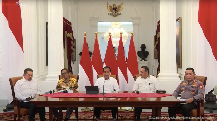 “Saya juga ingatkan kembali kepada jajaran aparat penegak hukum untuk menegakkan hukum yang seadil-adilnya, tanpa pandang bulu dan tidak tebang pilih,” ujar Presiden Jokowi, Selasa (7/2/23).
