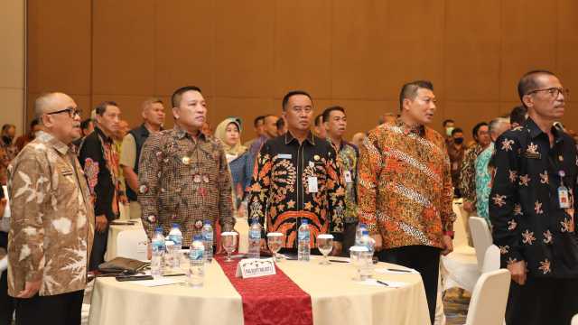 Rakor yang digelar oleh Pemprov Jawa Timur tersebut turut mengundang seluruh Kepala Daerah se Jawa Timur di Ballroom Hotel Santika Premiere, pada Selasa (7/3/23)