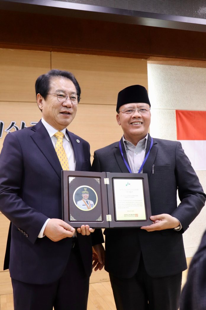 SuaraPemerintah.ID –Â Dalam rangkaian kunjungan ke Republik Korea Selatan, Gubernur Bengkulu Prof. Dr. Rohidin Mersyah mendapatkan honorary citizen atau warganegara kehormatan dari walikota Goesan County di Provinsi Chungcheong Utara, Korea Selatan. Penghargaan ini merupakan sebuah pengakuan atas berbagai inisiasi, kontribusi dan prestasi yang telah diukir oleh Gubernur Bengkulu tidak hanya ditingkat daerah tetapi juga skala nasional dan internasional.