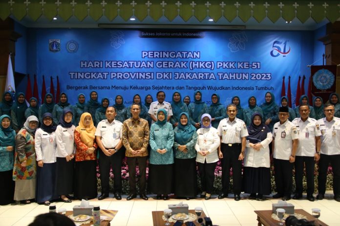 SuaraPemerintah.IDÂ – Pj Gubernur DKI Jakarta Heru Budi Hartono menghadiri acara Peringatan Hari Kesatuan Gerak Pemberdayaan dan Kesejahteraan Keluarga (HKG PKK) ke-51 Tahun 2023, yang diselenggarakan oleh Tim Penggerak PKK (TP PKK) Provinsi DKI Jakarta, di Auditorium Gedung PKK Melati, Jakarta Selatan, Rabu (15/3).