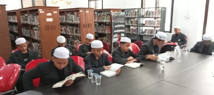 Usai diberikan pengarahan, puluhan Santri langsung membaca buku-buku yang ada di ruangan Perpusprov tersebut.