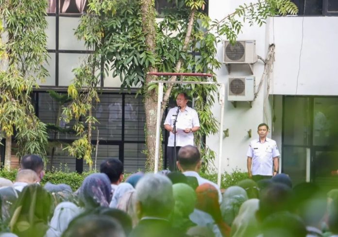 SuaraPemerintah.IDÂ – Pj Walikota Cimahi Dikdik S. Nugrahawan memimpin apel pertama jajaran Pemkot Cimahi usai libur Lebaran di Jalan Raden Demang Hardjakusumah, Rabu (26/42023). Jajaran ASN langsung hadir untuk bertugas melayani masyarakat kembali.