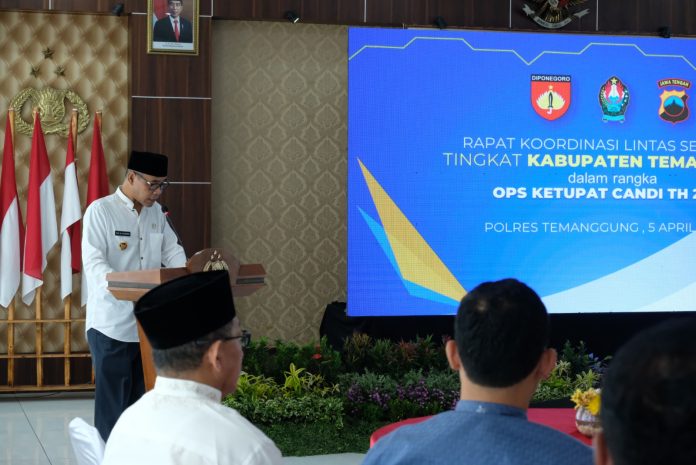 SuaraPemerintah.ID – Pemerintah Kabupaten Temanggung mengikuti rapat koordinasi lintas sektoral dalam rangka perayaan Hari Raya Idul Fitri dan Paskah tahun 2023 dalam Operasi Ketupat Candi di Aula Sumbing Sindoro, Mapolres Temanggung, Rabu (5/4/2023).