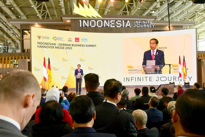 “Kemitraan Indonesia-Jerman ini dapat menjadi contoh baik kemitraan Utara-Selatan, kemitraan yang setara, saling menghormati, saling menguntungkan dan ini adalah wajah kemitraan untuk masa depan,” ujar Presiden Jokowi dalam sambutannya pada pembukaan pertemuan bisnis di Hall 2 Hannover Fairground, Hannover, Jerman, Senin (17/04/23).