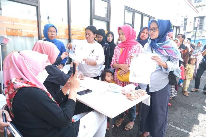 Untuk pembagiannya sendiri, dilaksanakan di setiap desa dengan melibatkan para kader, sedangkan masyarakat penerima bantuan hanya perlu membawa KTP dan KK untuk validasi data.