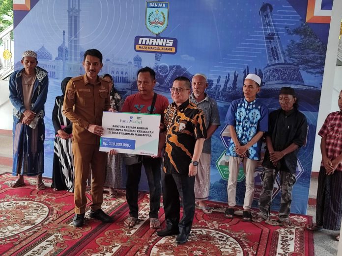 SuaraPemerintah.ID – Bupati Banjar H Saidi Mansyur di dampingi Direktur Unit Pengumpul Zakat (UPZ) Bank Kalsel Muhammad Fajri Muhtadi serahkan bantuan secara simbolis kepada para korban kebakaran di Desa Pekauman Ulu, di Mahligai Sultan Adam lantai I, Martapura, Selasa (23/5/23) pagi.