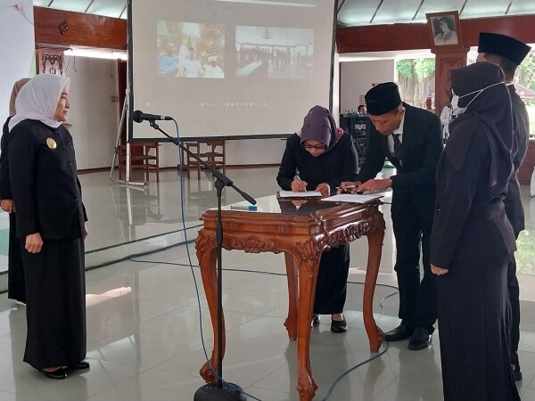 Pelantikan dan pengambilan sumpah janji jabatan yang dilakukan hari ini, terdiri dari 11 jabatan administrator serta 13 jabatan pengawas. Hadir sekretaris daerah, jajaran asisten dan staf ahli bupati, kepala OPD, serta media.