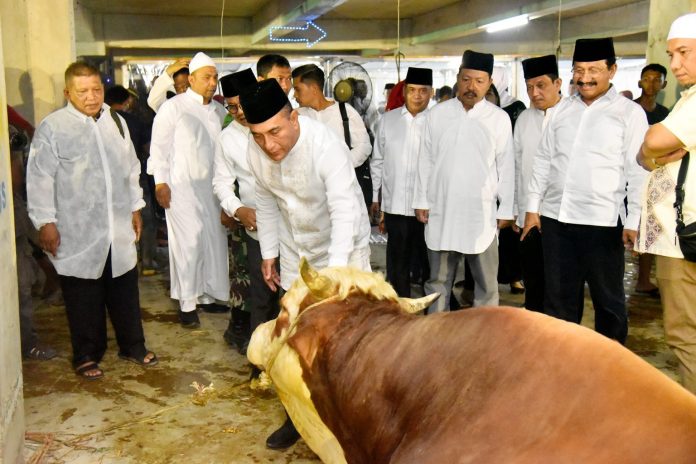 “Untuk itu mari kita tingkatkan dan perkuat ibadah kurban kita, dengan tujuan selain beribadah memohon ridho Allah SWT, kita juga dapat meningkatkan asupan daging bagi masyarakat kita,” ujar Edy.
