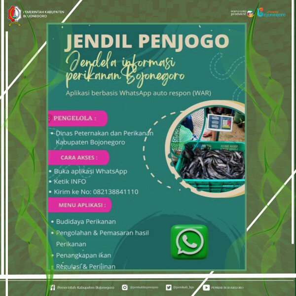SuaraPemerintah.ID – Sebagai langkah mempermudah informasi terkait dunia perikanan, Pemkab Bojonegoro melalui Dinas Peternakan dan Perikanan (Disnakkan) membuat inovasi layanan “Jendil Penjogo” (Jendela Informasi Perikanan Bojonegoro). Inovasi layanan ini berupa aplikasi berbasis WhatsApp auto respon.
