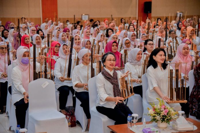 SuaraPemerintah.IDÂ – Turut berpartisipasi dalam rangka menyukseskan pemecahan rekor dunia Guinness World of Records (GWR) Angklung yang akan digelar pada 5 Agustus 2023 mendatang, Dharma Wanita Persatuan Kementerian Energi dan Sumber Daya Mineral (DWP KESDM) melalui OASE Kabinet Indonesia Maju (KIM) menyelenggarakan latihan bersama GWR angklung di Gedung Krida Bhakti, Kementerian Sekretariat Negara (Kemensetneg) di Jakarta, Senin (10/6).