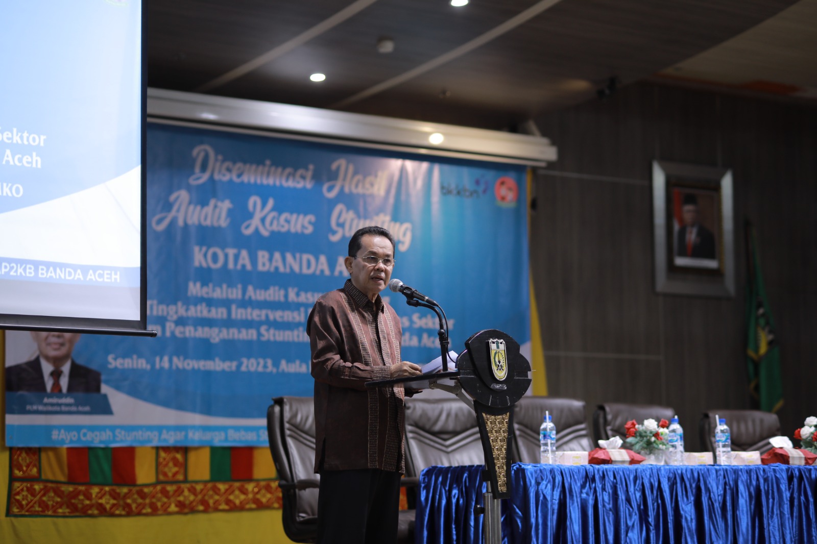 SuaraPemerintah.id – Pelaksanaan harian (Plh) Wali Kota Banda Aceh, Amiruddin, membuka secara resmi kegiatan Diseminasi Hasil Audit Kasus Stunting Banda Aceh tahun 2023 pada Kamis, 13 Juli 2023, di aula lantai IV Gedung Mawardy Nurdin, lingkungan sekretariat Pemko Banda Aceh.