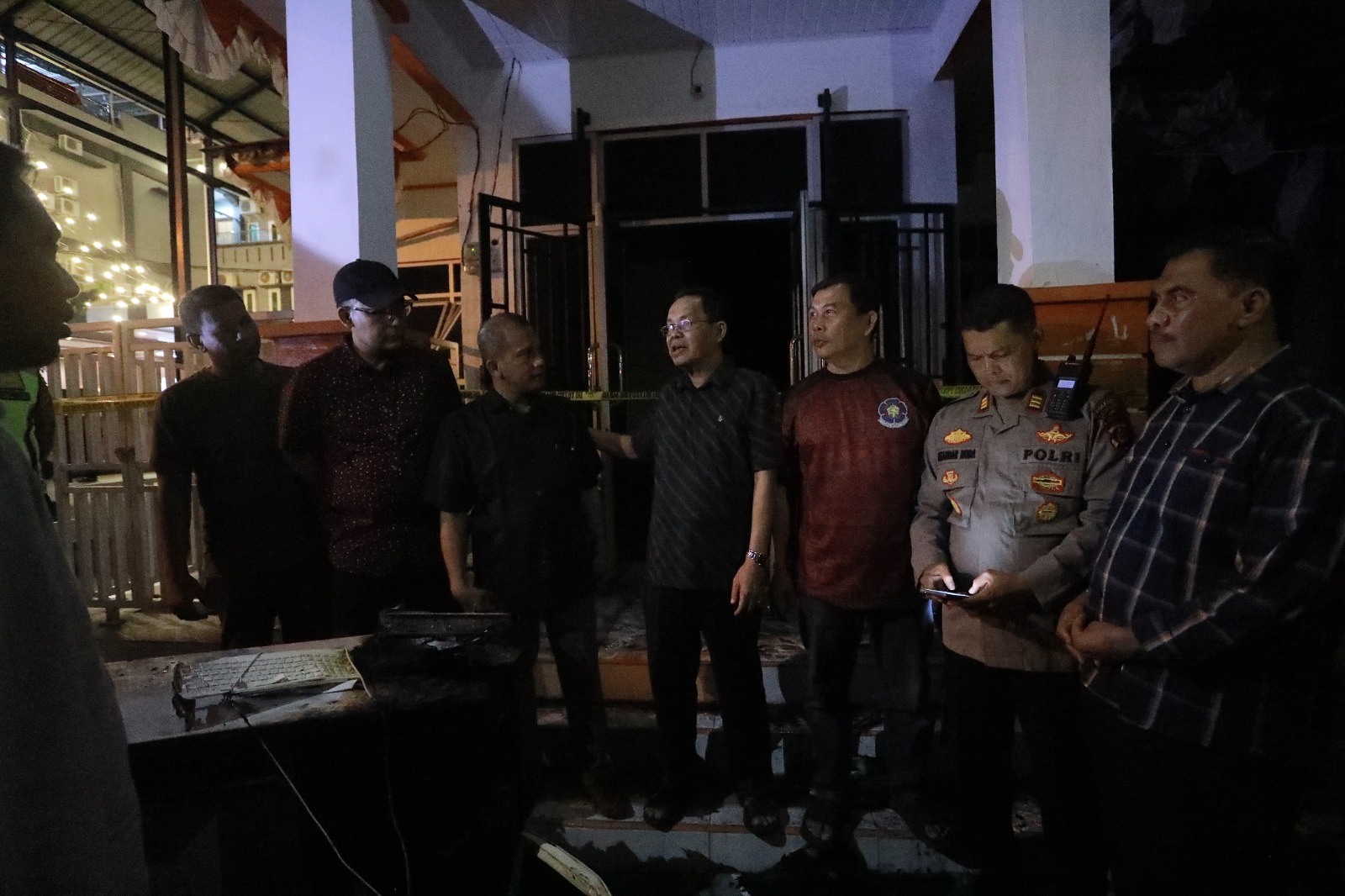 Tiba di lokasi sekira jam 21.30 WIB, Amiruddin bersama sejumlah pejabat terkait langsung mengecek beberapa ruangan yang sempat dilalap api satu jam sebelumnya.