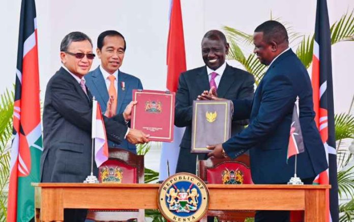 SuaraPemerintah.ID – Pertemuan bilateral antara Indonesia dan Kenya membahas sejumlah kerja sama antarkedua negara dalam berbagai sektor. Presiden Joko Widodo (Jokowi) menyebutkan salah satunya yakni dalam mendorong pembentukan Preferential Trade Agreement (PTA) di Kenya.