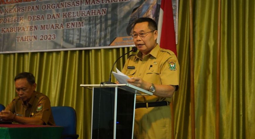 Dalam upaya mewujudkan tata kelola kearsipan yang efektif, efisien dan tertata dengan baik, Bupati Muara Enim yang diwakili oleh Asisten I Bidang Pemerintahan dan Kesra H Emran Tabrani Melaunching Gerakan Nasional (Gernas) Sadar Tertib Arsip, Senin (31/07) saat membuka Sosialisasi Kearsipan bagi para Pengelola Kearsipan.