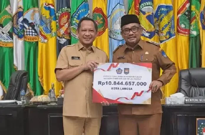 Penyerahan insentif fiskal dilakukan oleh menteri keuangan Sri Mulyani dan Menteri Dalam Negeri Muhammad Tito Karnavian kepada sejumlah kepala daerah termasuk kepada Pj Walikota Langsa Ir Said Mahdum Majid, Senin (31/7/2023), di gedung Sasana Bhakti Praja Kemendagri Jakarta pusat.