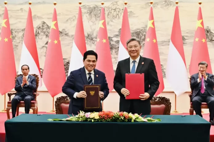 SuaraPemerintah.IDÂ – Kementerian Badan Usaha Milik Negara (BUMN) mengantongi kerja sama dengan China mencapai US$ 13,7 miliar atau setara Rp214 triliun. Kerja sama tersebut didapat saat agenda kunjungan Presiden Joko Widodo (Jokowi) ke China kemarin.