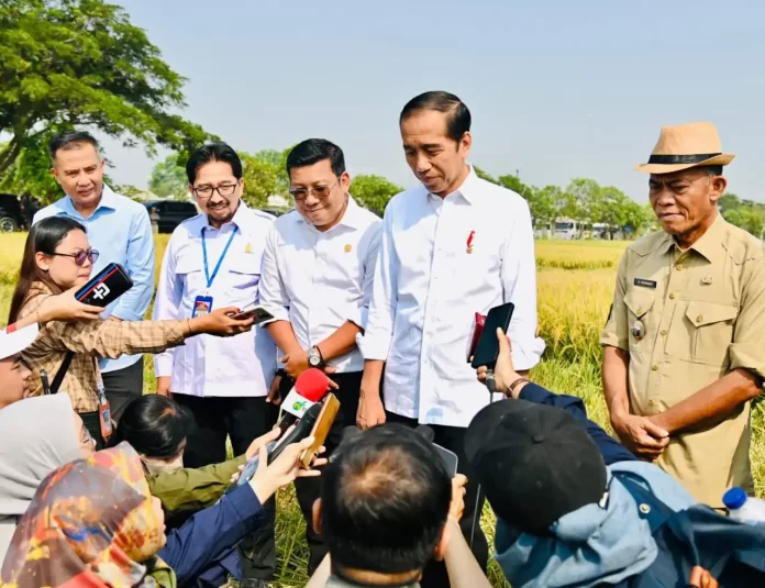 SuaraPemerintah.ID – Presiden RI Joko Widodo (Jokowi) mengikuti panen raya padi di Desa Ciasem Girang, Kabupaten Subang, Provinsi Jawa Barat, pada Minggu pagi, 8 Oktober 2023.