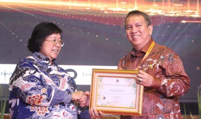 Penghargaan tersebut diterima langsung oleh Pj Bupati Muara Enim H Ahmad Rizali dari Menteri LHK RI Siti Nurbaya Bakar dalam ajang Penganugerahan Proklim Tahun 2023 di Auditorium Gedung Manggala Wana Bhakti, Jakarta, Selasa (24/10).