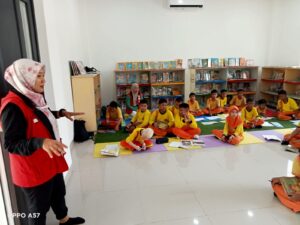 Usai mendengarkan cerita dongeng, puluhan anak-anak SDN 1 Pangkalpinang, diajak berkeliling ke Perpuprov umum yang berada di lantai dua GLP Babel.