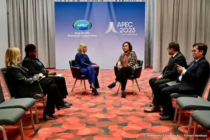 SuaraPemerintah.ID – Menteri Keuangan (Menkeu) Sri Mulyani menyempatkan diri untuk bertemu dengan Anna Bjerde, World Bank’s Managing Director for Operations, di sela-sela agenda pertemuan para Menteri Keuangan negara-negara APEC di San Francisco pada Senin (13/11) lalu.