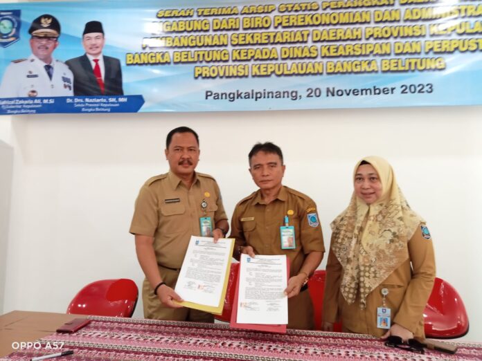 SuaraPemerintah.ID – Kepala DKPUS Provinsi Kepulauan Bangka Belitung (Babel), Rakhmadi, menerima Arsip Statis Penggabungan Biro Perekonomian dan Adminitrasi Pembangunan Setda Babel.