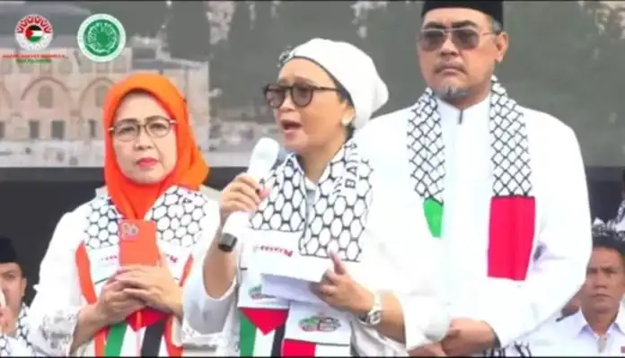 SuaraPemerintah.ID – Menteri Luar Negeri (Menlu) Retno Marsudi membacakan puisi yang ia tulis pada malam sebelumnya yang berjudul Palestina Saudaraku di depan ribuan massa Aksi Bela Palestina di Monas, Jakarta Pusat, Minggu (5/11).