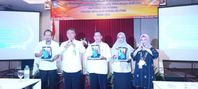 Kepala DKPUS Babel Rakhmadi mengapresiasi hasil pengawasan kearsipan LKD Kabupaten Beltim dengan perolehan nilai tertinggi.