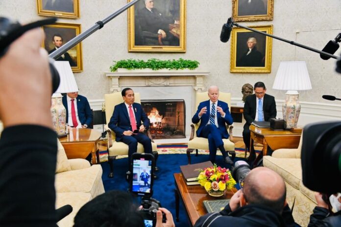 SuaraPemerintah.IDÂ – Presiden RI Joko Widodo (Jokowi) melakukan pertemuan dengan Presiden Amerika Serikat Joe Biden di Gedung Putih, Washington DC, Amerika Serikat.
