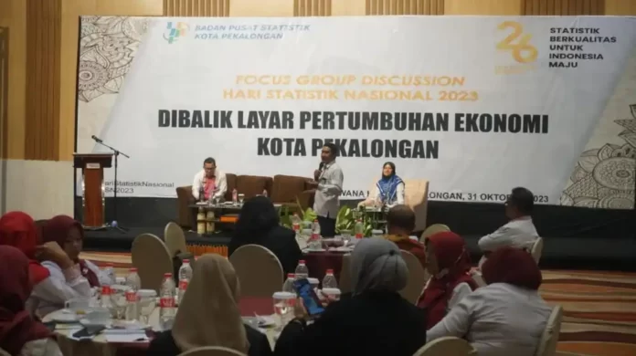 Hal ini diungkapkan Statistisi Ahli Muda BPS Provinsi Jawa Tengah, Mathius Samuharwadi selaku narasumber dalam kegiatan Focus Group Discussion dalam rangka Hari Statistik Nasional Tahun 2023 “Dibalik Layar Pertumbuhan Ekonomi Kota Pekalongan” yang diselenggarakan oleh BPS Kota Pekalongan, berlangsung di Ballroom Hotel Nirwana Kota Pekalongan, Selasa (31/10/2023).