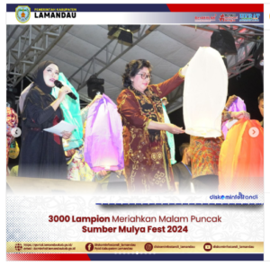 Diketahui, sebanyak 3000 Lampion diterbangkan pada momen yang menjadi event tahunan desa Sumber Mulya ini, dan diramaikan oleh artis Ibukota Della Monica, disela acara juga dilaksanakan sosialisasi oleh KPU dan Banwaslu terkait Pesta Demokrasi 2024. (Diskominfostandi)
