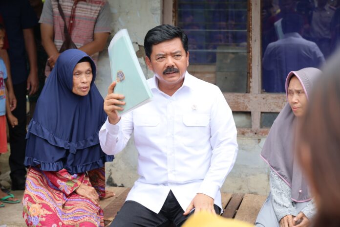 Hal tersebut disampaikan Menteri ATR/BPN, Hadi Tjahjanto saat menyerahkan 20 sertipikat tanah secara door to door di Desa Klunjukan, Kecamatan Sragi, Kabupaten Pekalongan pada Senin (15/01/24).