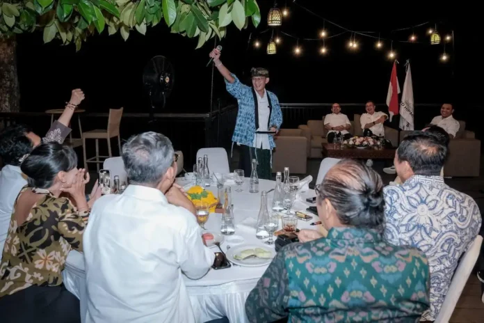 Menparekraf Sandiaga Salahuddin Uno dalam Dinner Meeting Outlook Pariwisata Bali di The Payogan Villa Resort and Spa, Ubud, Selasa (30/1/2024).