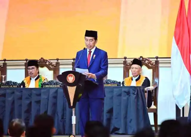 “Yang paling utama adalah kualitas putusan, bahwa putusan pengadilan harus memberikan rasa keadilan, memberikan kepastian hukum, dan mendukung pembangunan bangsa dan negara menuju Indonesia Maju,” tutur Presiden.