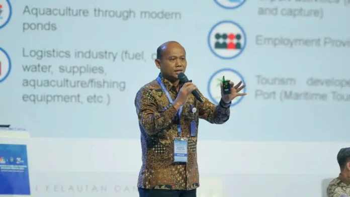 Direktur Jenderal Perikanan Budi Daya, Tb. Haeru Rahayu memaparkan strategi KKP dalam mendongkrak produksi komoditas unggulan ekspor asal Indonesia, salah satunya melalui upaya pembangunan modeling.