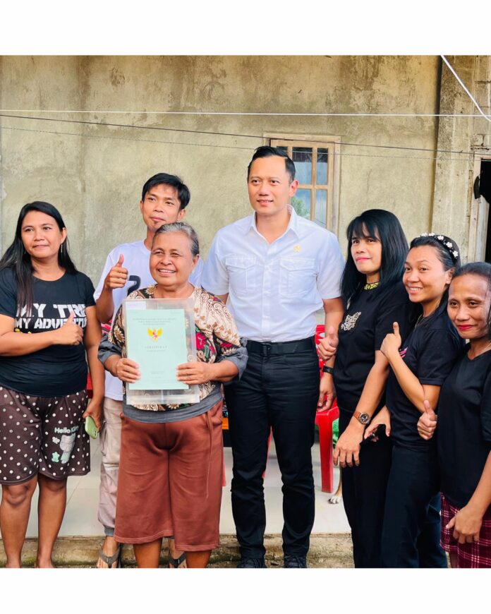 Sebagai informasi, terdapat 105 sertipikat tanah yang akan diserahkan di Kelurahan Malalayang Dua, Kota Manado merupakan hasil program Redistribusi Tanah serta Pendaftaran Tanah Sistematis Lengkap (PTSL). Penyerahan tiga sertipikat berlangsung secara door to door kepada masyarakat yang berprofesi sebagai tukang kayu, petani dan nelayan.